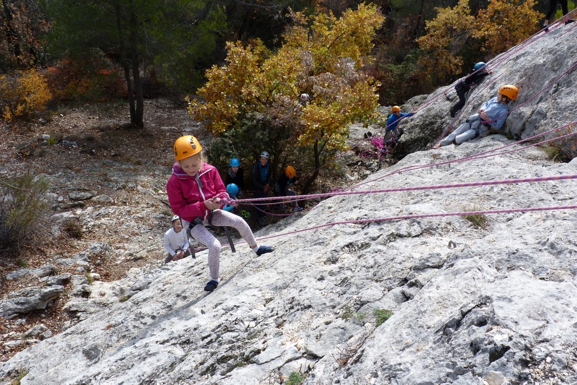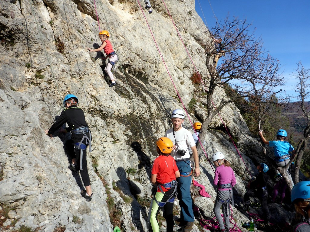 Samedi 26 Novembre, 12 jeunes des cours d’escalade du jeudi, accompagnés de Serge, Nico et Caro sont allés grimper sur la falaise de Château Arnoux. Après les pluies incessantes de la semaine précédente, nous avons été très chanceux car le soleil était au rendez vous !